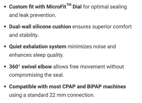 > Custom fit with MicroFit™ Dial for optimal sealing and leak prevention.